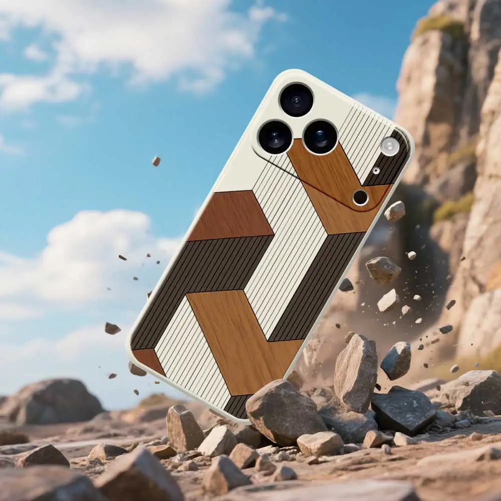 حالات الهاتف الخشبية الهندسية آيفون 17 برو ماكس 17 الهواء 16 15 14 13 12 11 برو ماكس XS ماكس 7 8 زائد 16e 16 زائد غطاء من البولي يوريثان Coque