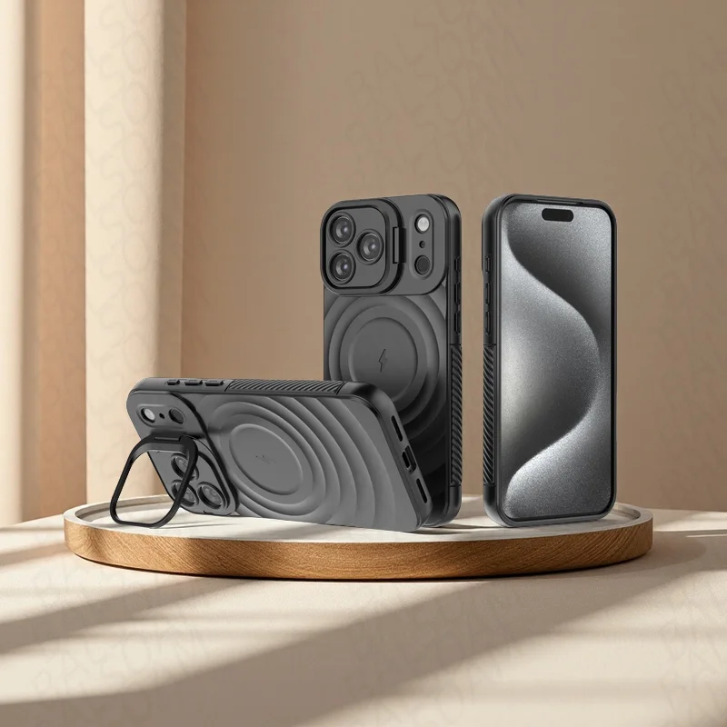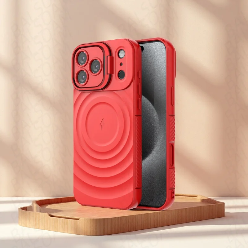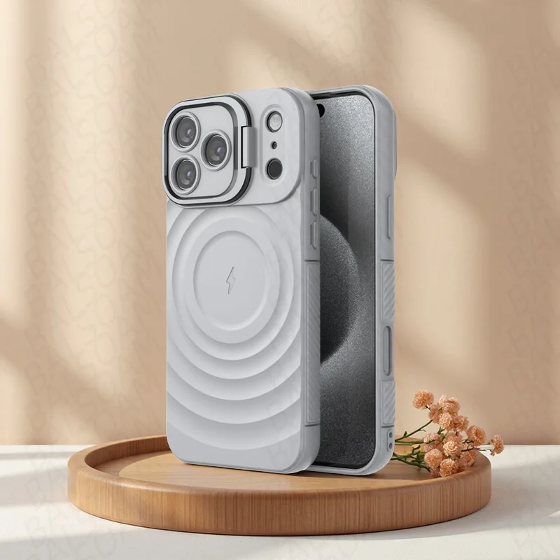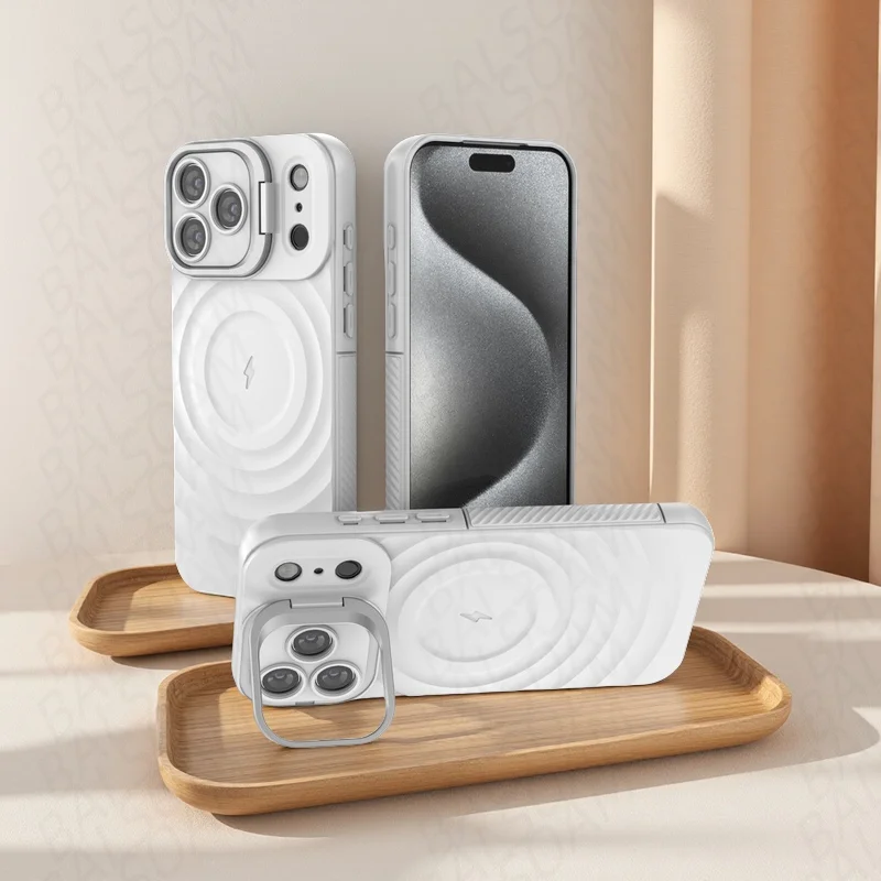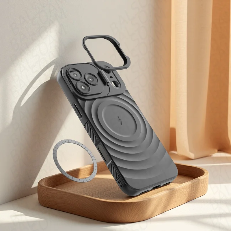 Matte Ripple Folding Camera Stand Case For iPhone 17 Air 16 15 14 Plus 13 Pro Max For Magsafe Magnetic Wireless Charge TPU Cover