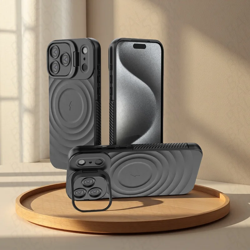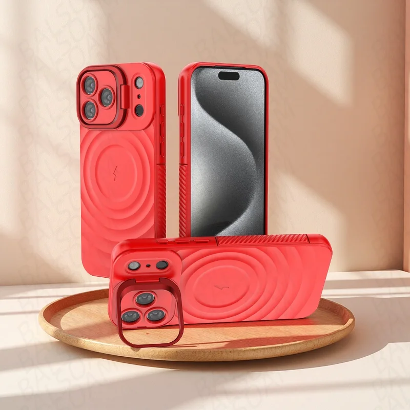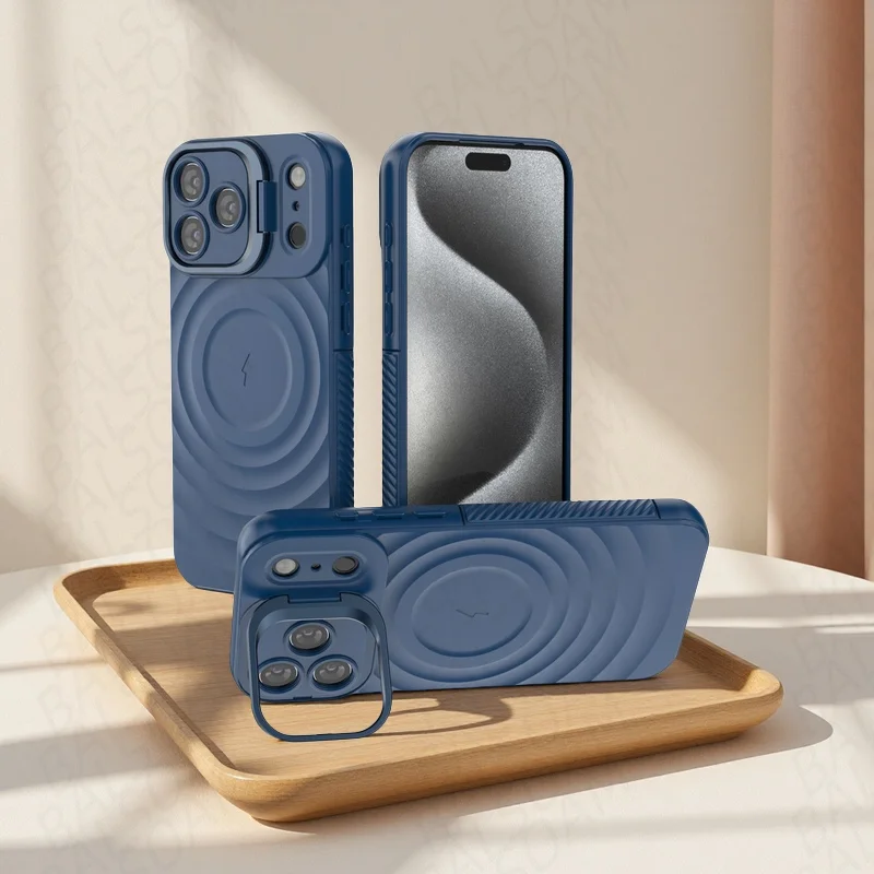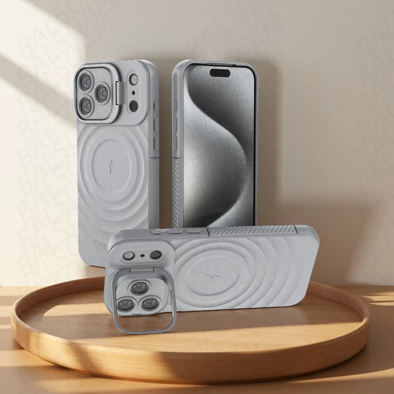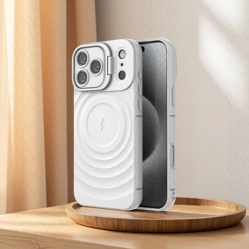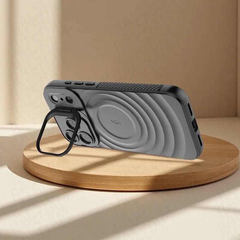 Matte Ripple Folding Camera Stand Case For iPhone 17 Air 16 15 14 Plus 13 Pro Max For Magsafe Magnetic Wireless Charge TPU Cover